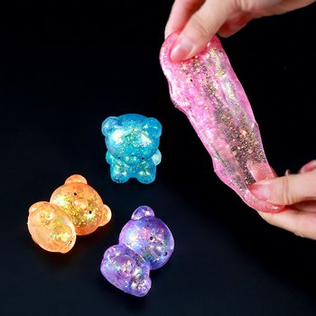 JO Hot-Selling Mini Aurora Maltoon Glitter Squeeze Bear TPR Stress Relief Ball with Slow Rebound & Pinch Features for Children